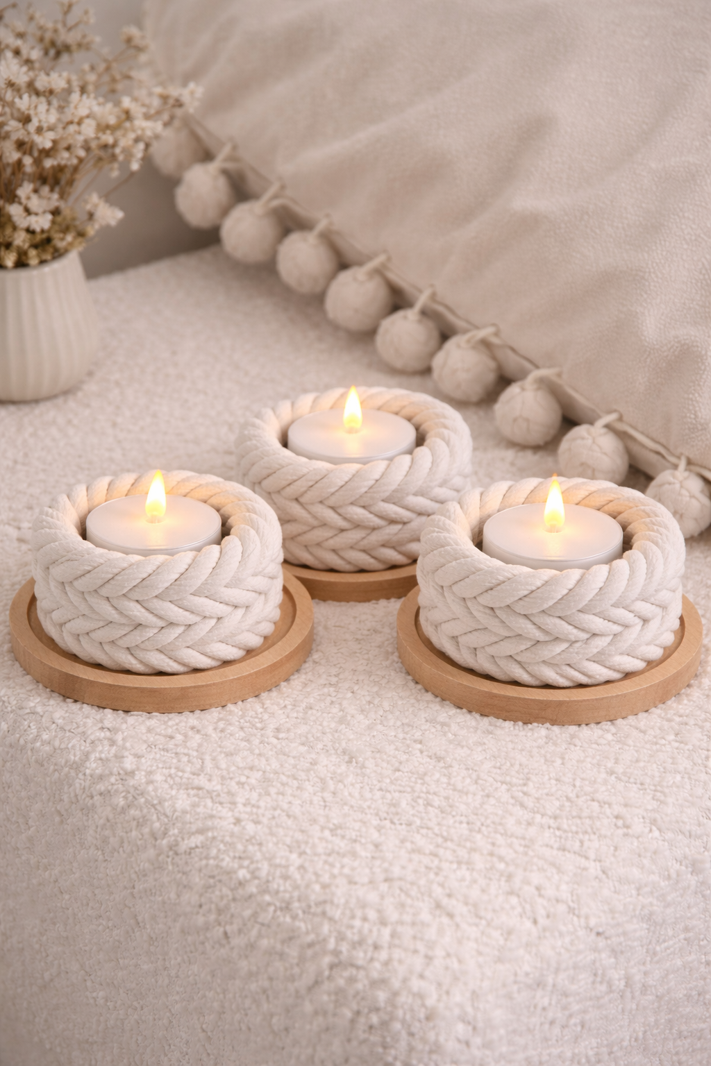 Natürlich, stilvoll und gemütlich: Dieser Teelichthalter im geflochtenen Seil-Design bringt eine warme, einladende Atmosphäre in dein Zuhause. Die filigranen Flechtstrukturen erzeugen ein faszinierendes Lichtspiel und machen den Halter zu einem dekorativen Highlight auf Tisch, Regal oder Fensterbank. Ein perfektes Accessoire für entspannte Abende oder als liebevolles Geschenk.